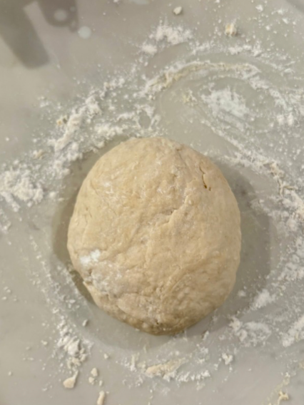 - Turn the dough out onto a lightly floured surface and knead just 1–2 minutes. This isn’t bread dough — you’re not developing gluten here. You’re simply bringing it together until it’s soft and smooth.