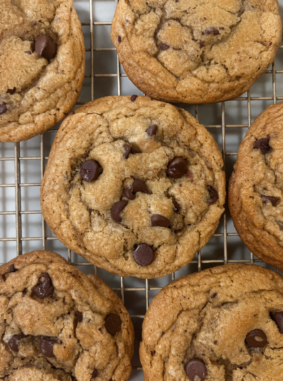A higher ratio of brown sugar keeps these cookies moist and chewy, while the extra egg yolk adds richness and helps create that glossy, soft center. Paired with just the right amount of flour and minimal mixing, the result is a dough that bakes up thick without becoming dense.