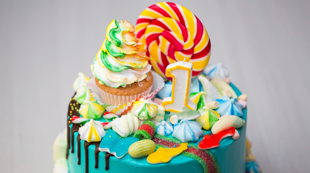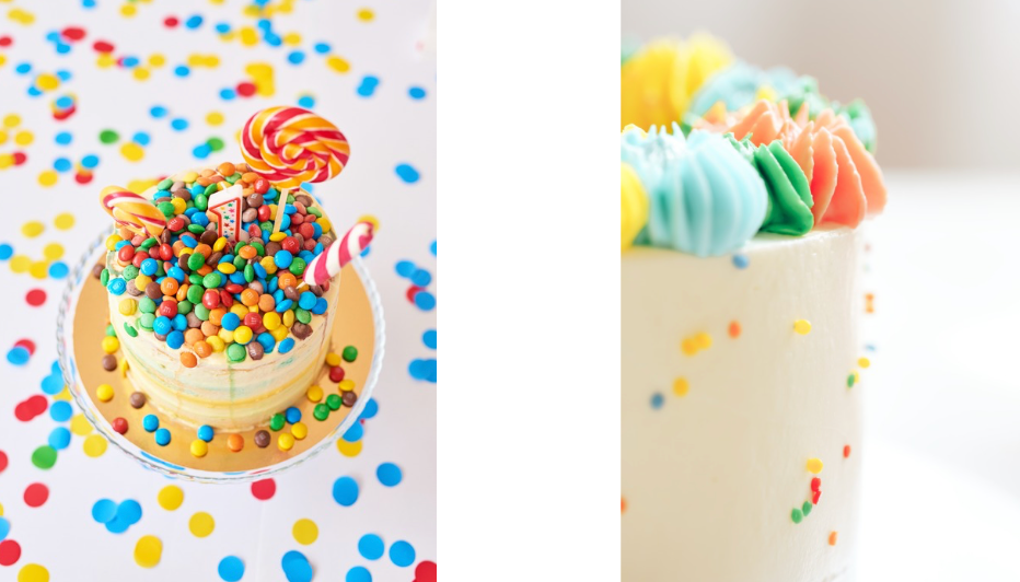 - Birthday Explosion: Swirled funfetti cake with rainbow frosting smears.
