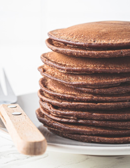 These pancakes use both cocoa powder and melted chocolate for depth and richness — not too sweet, but full-on chocolate bliss.