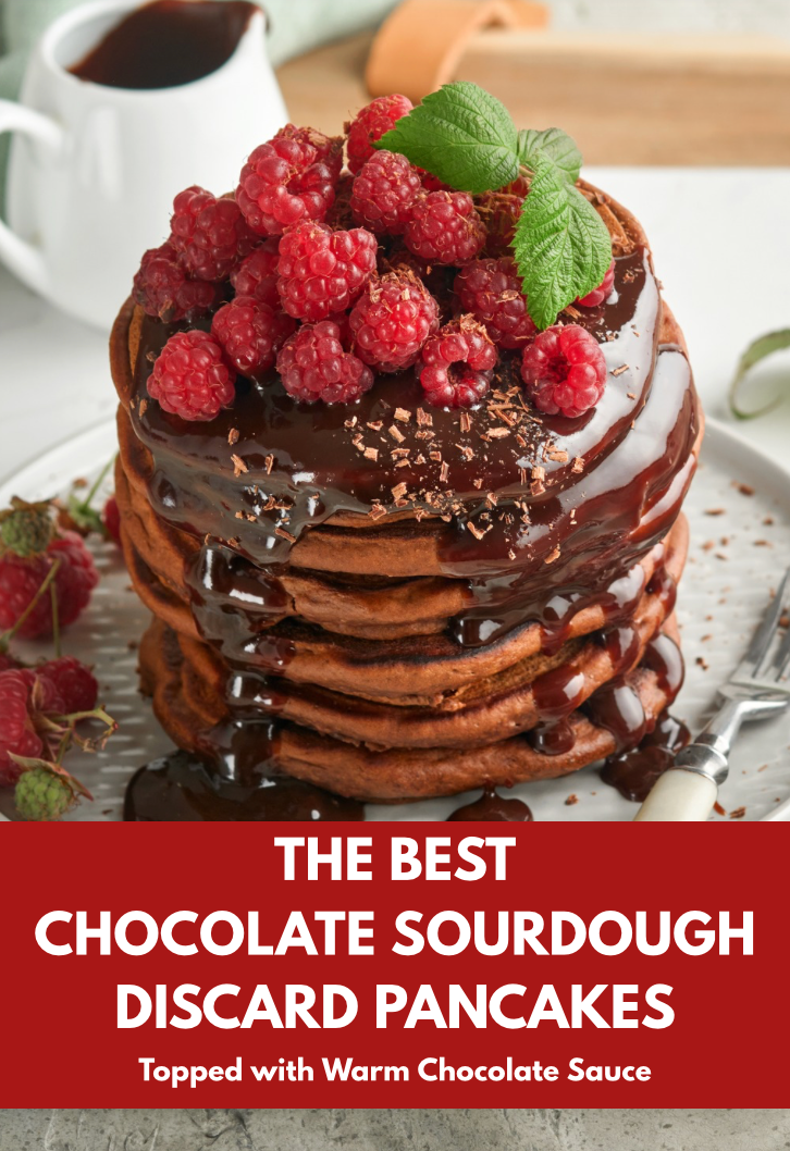 Chocolate Sourdough Discard Pancakes with Chocolate Sauce