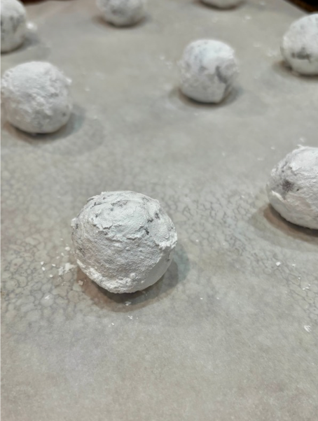 - Step 3: Roll cookie dough into dough balls and coat with a thick amount of powdered sugar.