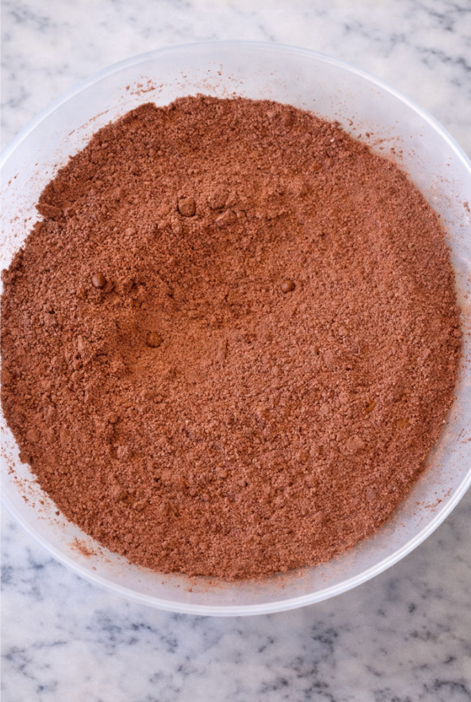 Breaking up cocoa clumps now ensures a smooth, evenly flavored dough later.