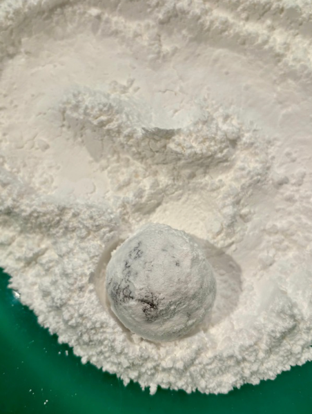 - Roll them until you get a thick layer of powdered sugar coating them.