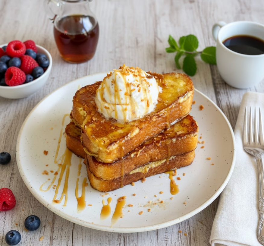 There are some mornings when plain scrambled eggs just won’t cut it. You want something indulgent—something that feels like brunch at a little café, but made right at home in your kitchen. That’s exactly where this Coconut Cream Pie–Inspired French Toast comes in.