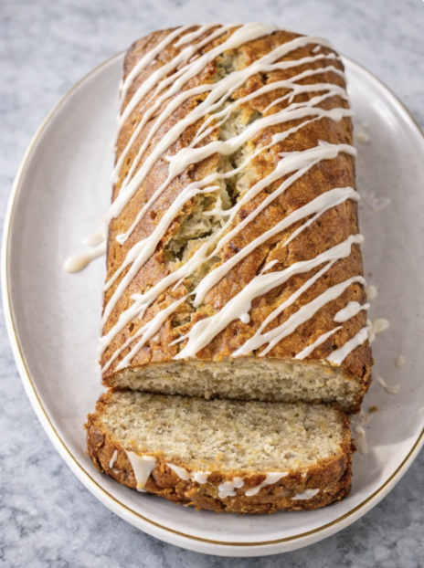 - Drizzle the glaze over the cooled bread. If you want a little extra flair, sprinkle the top with toasted coconut or chopped macadamias for that bakery-style finish.
