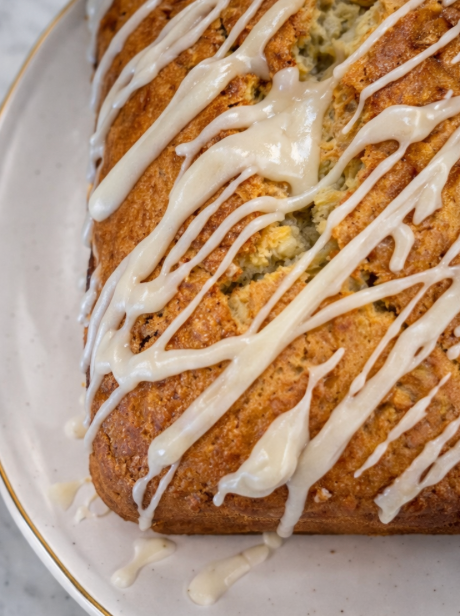 What really sets this loaf apart is the texture and contrast. Toasted coconut and buttery macadamia nuts add little pockets of crunch, while a spoonful of yogurt keeps the crumb plush and bakery-soft for days. Finished with a simple vanilla glaze that drips into every crack and swirl, this bread lands right between cozy and fresh—familiar enough to feel nostalgic, yet bright enough to feel special.