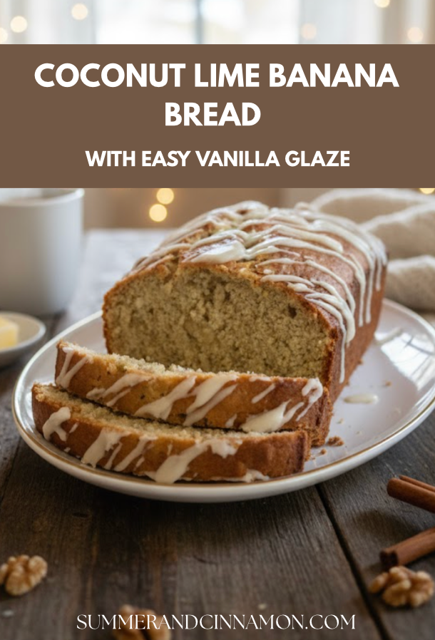 Coconut Lime Banana Bread with Macadamia Crunch & Vanilla Glaze is a slice of sunshine. It’s simple enough for weekday baking but special enough for brunch or gifting. One bite, and you’ll taste the creamy banana, zingy lime, and buttery macadamia all dancing together — a loaf that feels like a warm, tropical escape no matter where you are.