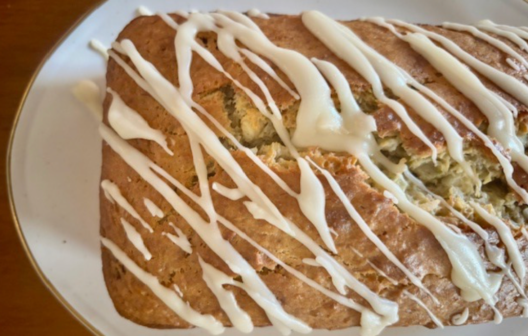 Coconut Lime Banana Bread with Macadamia Crunch & Vanilla Glaze