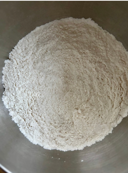 - Mix the dough. Add liquids to the flour and salt. Stir until a shaggy dough forms.