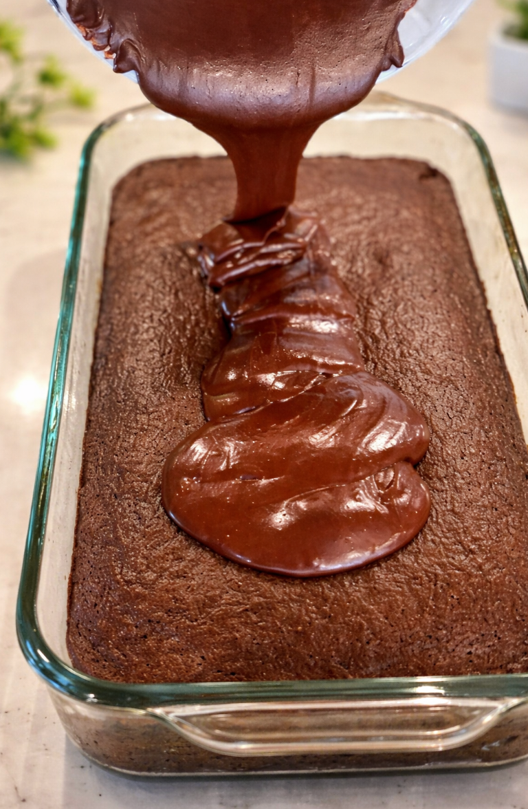 • Frost While Warm: For the signature glossy, fudgy top layer, spread the frosting over the cake immediately after it comes out of the oven. It will soften and melt slightly into the surface before setting.
