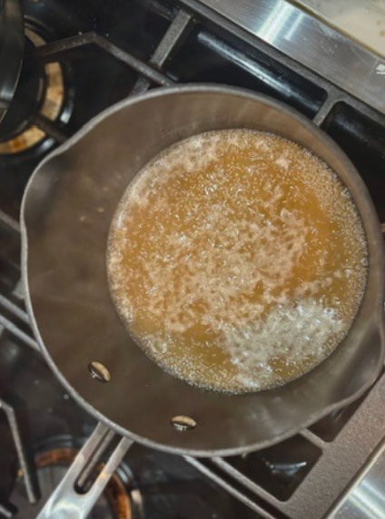 - Melt the fat: In a medium saucepan, melt butter (or warm drippings) over medium heat.