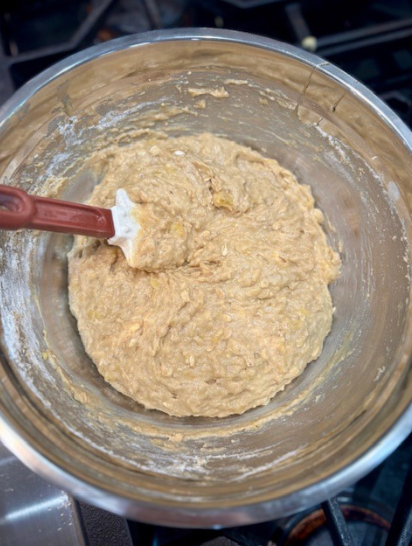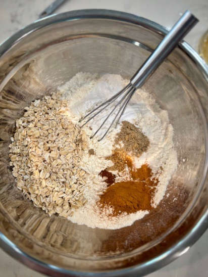 - In another bowl, combine flour, oats, baking soda, baking powder, salt, and spices.