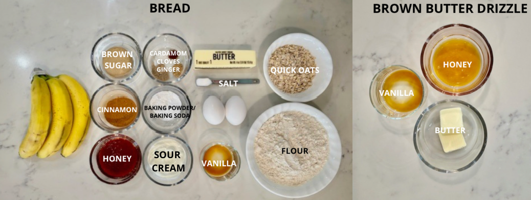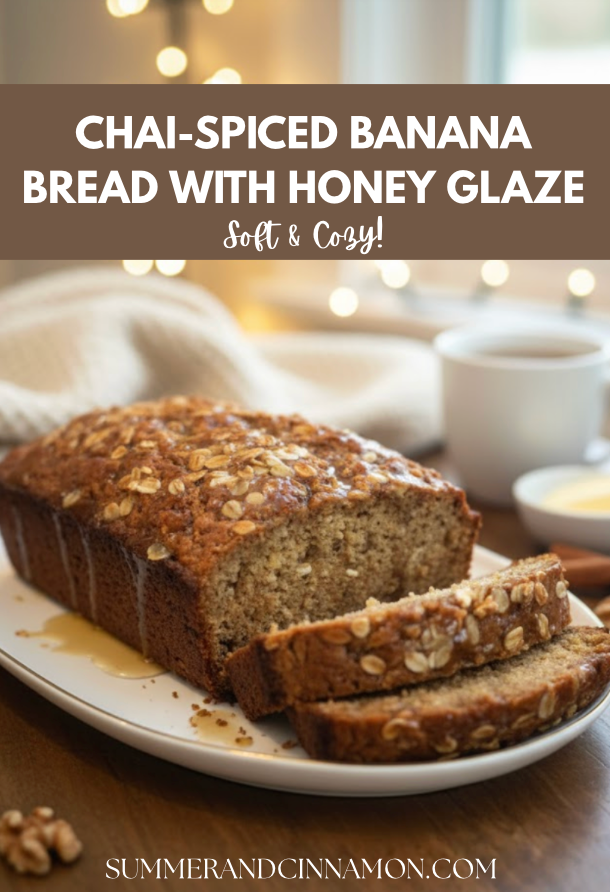 This banana bread succeeds because it strikes the perfect balance of moisture, warmth, and complexity. The honey and bananas keep it tender, while the browned butter deepens the flavor. The chai spices bring comfort and aroma without overpowering the natural sweetness. Toasted oats add an earthy bite, and the drizzle ties it all together with buttery sweetness. It’s a loaf that feels classic yet new — familiar enough to be comforting, but special enough to impress anyone who tries it.