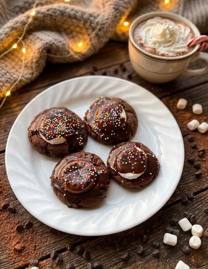 The first time I made these, my kitchen smelled like a chocolate shop had moved in for the holiday season. The dough comes together warm and velvety, the marshmallows puff up just enough to melt into the center, and the glossy cocoa icing drips over the top like a perfect winter sweater. And just between us: adding one extra egg yolk to the batter gives the cookies an unbelievably soft, brownie-like texture that puts them completely over the top.