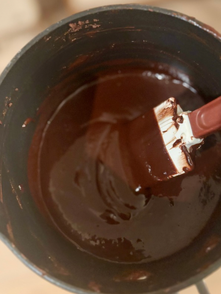 A simple hot-cocoa-style icing that goes glossy and sets soft on top of the marshmallow.