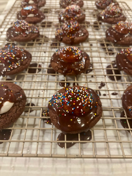 Let them cool a few minutes on the pan, then transfer to a rack. Spoon the icing over the marshmallow while the cookies are still slightly warm.
