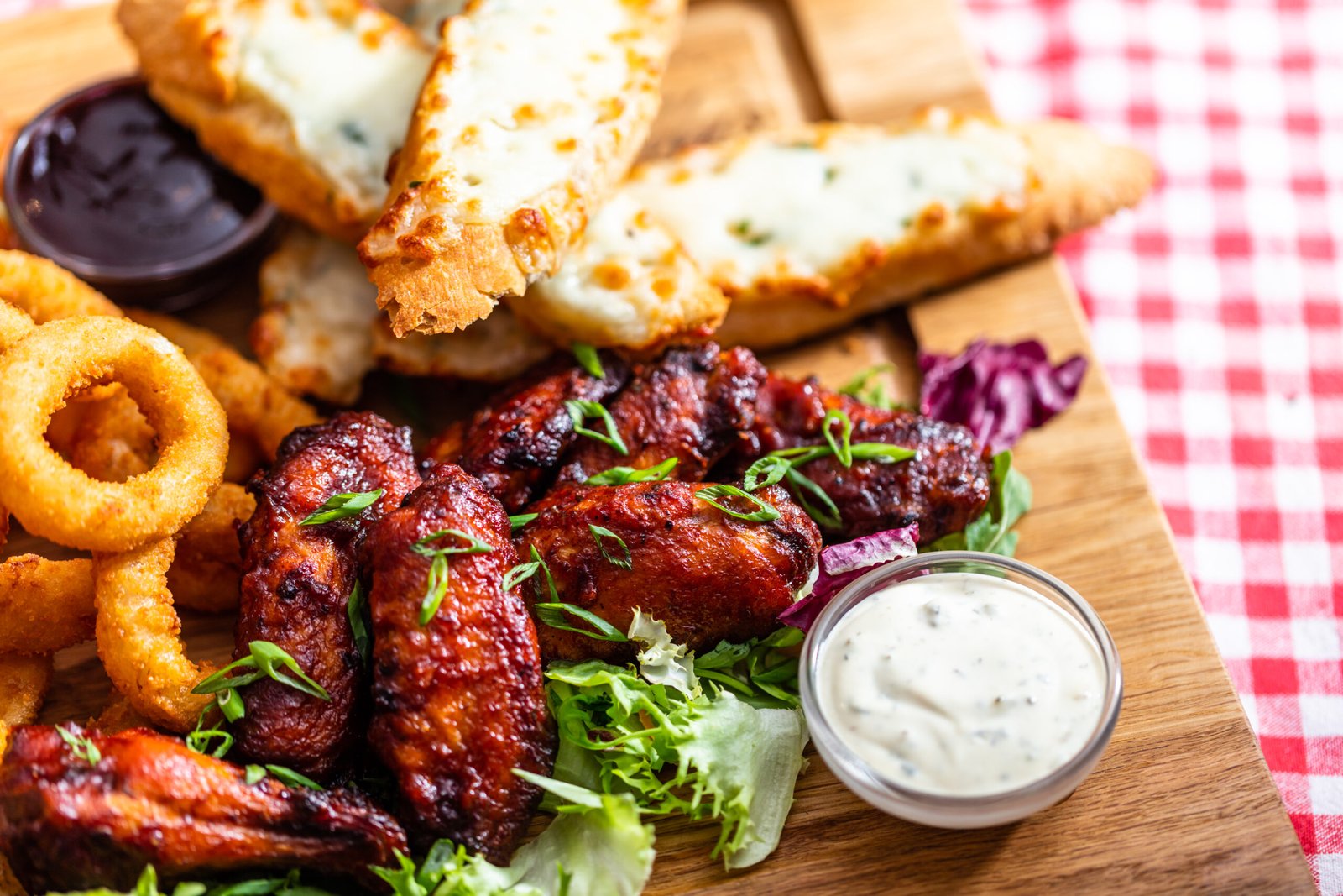 | Part of a larger spread | 4β6 pieces | Wings are one of many snack options |
