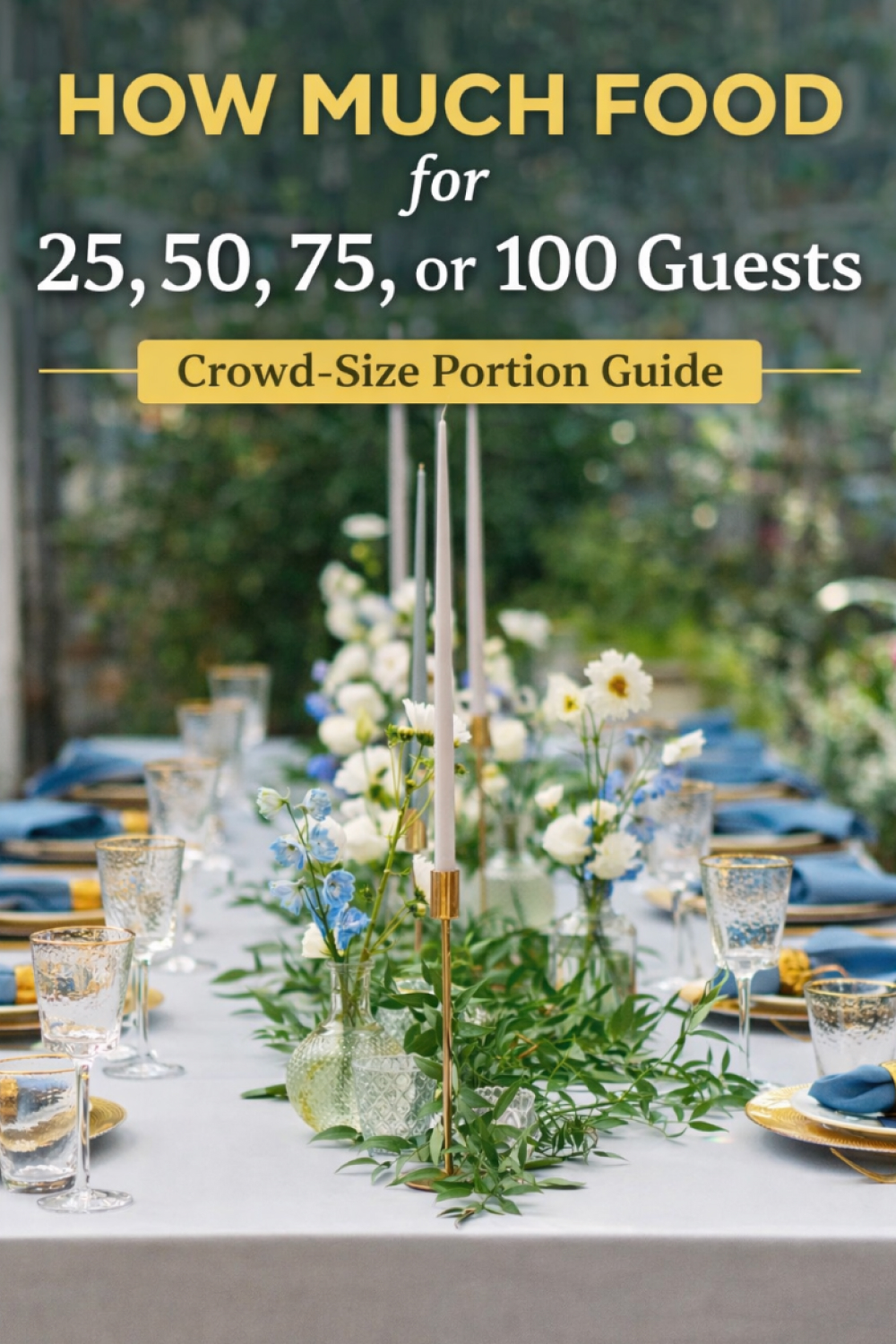 This guide walks you through exactly how much food to prepare for 25, 50, 75, or 100 guests, including appetizers, main dishes, sides, desserts, and drinks. You’ll also find helpful planning tips so your buffet feels full, balanced, and well organized.