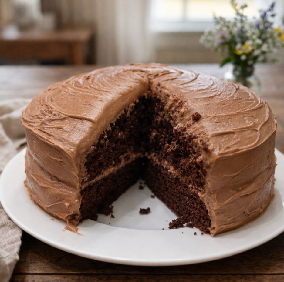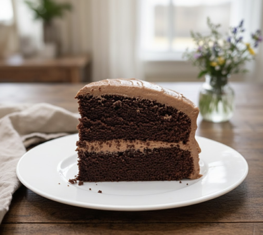 This cake balances fat, sugar, and liquid in a way that guarantees tenderness without heaviness. The cocoa is fully bloomed, the sugars provide moisture and structure, and the frosting brings contrast instead of cloying sweetness. Every component supports the next — which is why this cake feels bakery-quality but still approachable.