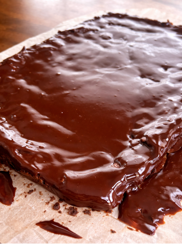 14. Let brownies cool completely, then spread the peppermint ganache over the top.