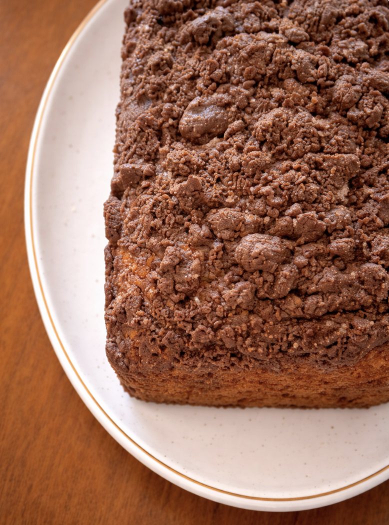 Finally, the cocoa streusel topping seals the deal. Chilled butter creates those chunky, bakery-style crumbs, and the cocoa adds just enough bitterness to balance the sweetness below. As it bakes, the streusel forms a crisp, crackly crust that protects the loaf and keeps the inside moist.