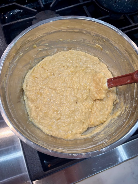 - Fold everything together: Gently stir the dry mixture into the wet ingredients just until combined — overmixing can make it tough.