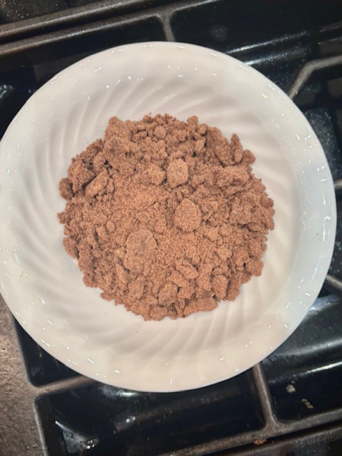 - Combine flour, brown sugar, cocoa, and salt. Cut in butter until crumbly; chill.