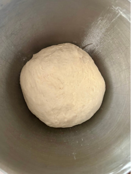 Add the salt and begin adding the flour, one cup at a time, mixing until a soft dough forms. You’re looking for dough that is slightly sticky but still easy to handle. It should pull away from the sides of the bowl but still feel soft and supple.