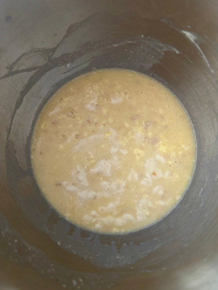 - In a stand mixer, mix together the sourdough discard, warm milk, sugar, melted butter, and yeast until smooth and well combined.