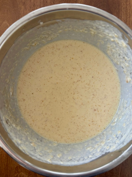 - Step 3: Combine dry ingredients into wet, mix just until combined. Allow mixture to sit for 30 minutes.
