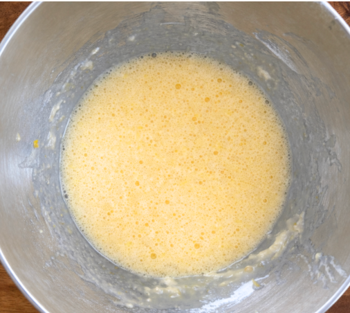Whisk the eggs into the sugar mixture until smooth, but avoid incorporating excess air.