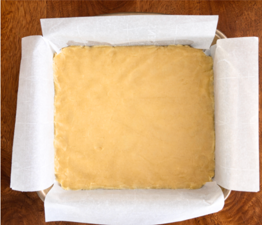 - Step 2: Press dough into parchment lined 8×8 pan. Bake for 18-22 minutes at 350 degrees.