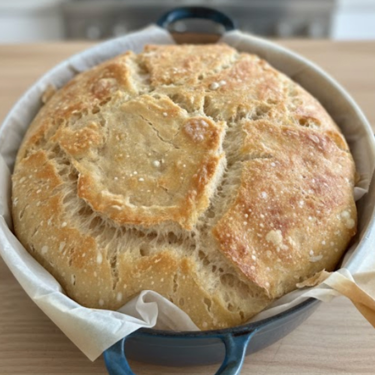 This long-fermented, no-knead sourdough sits at the sweet spot between simplicity and incredible flavor. With almost no effort, you end up with a loaf that’s tall, airy, tangy, crisp on the outside, and unbelievably moist on the inside. It’s the kind of bread that makes sandwiches taste gourmet and morning toast feel like an event.
