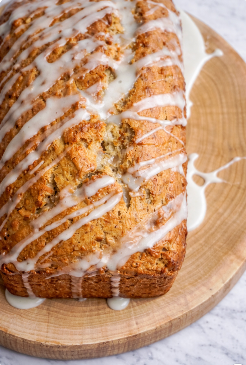 It’s a loaf that fits just as easily into a slow weekend morning as it does an afternoon snack or simple dessert. Whether you enjoy it plain or finished with the coconut vanilla glaze, this is the kind of banana bread that disappears quickly—and earns a permanent spot in your recipe box.