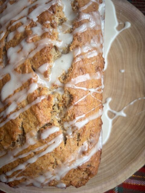 Make sure the loaf is fully cooled before adding the glaze, or it will melt into the bread.
