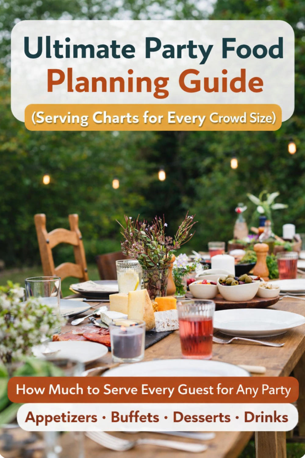 Party food planning becomes much easier when you break down portions into simple categories like appetizers, mains, desserts, and drinks.